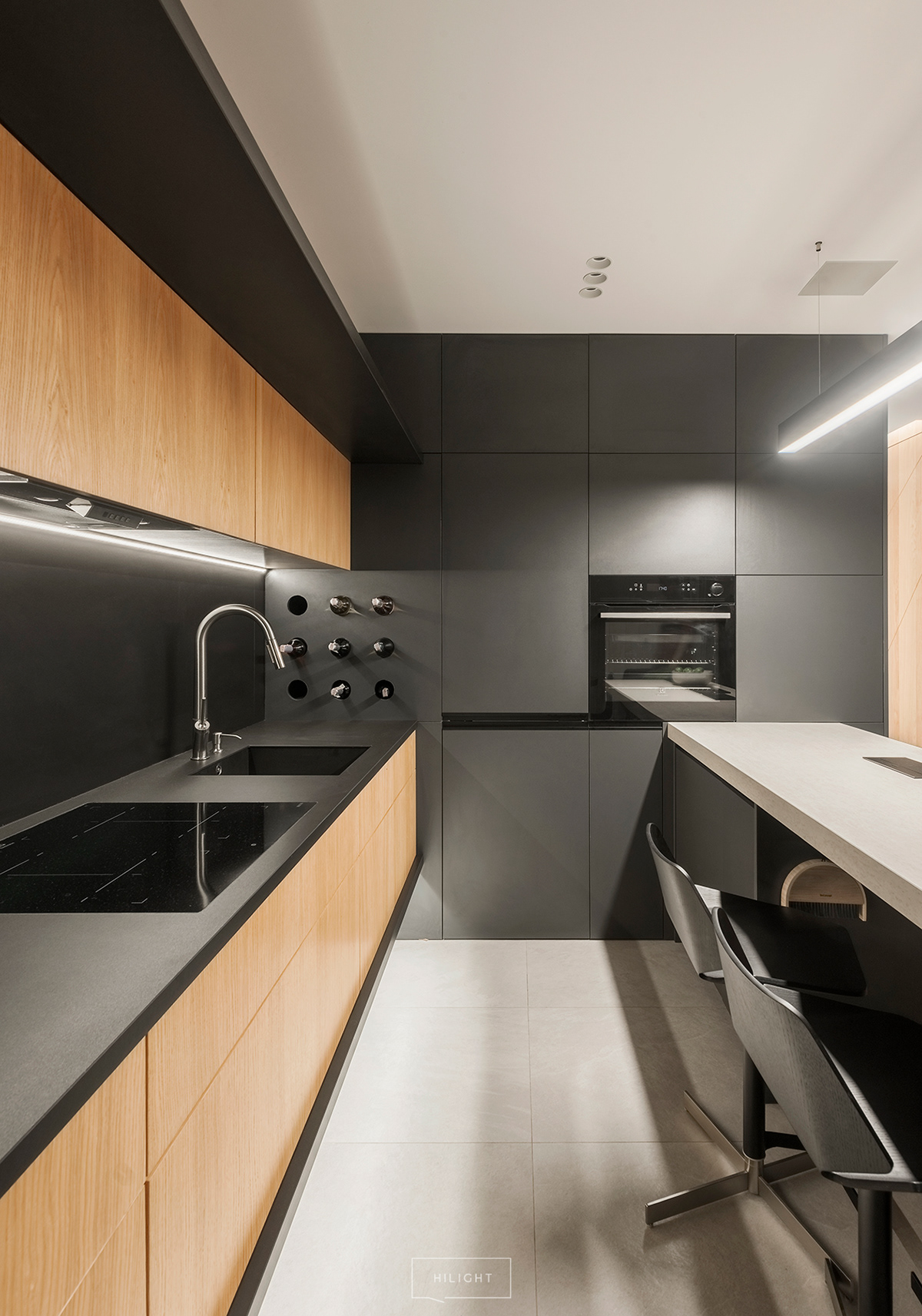붙박이장의 형태의 수납장을 놓아 깔끔하면서 와인렉을 빌트인을 하여 디자인으로서 돋보이게 합니다.