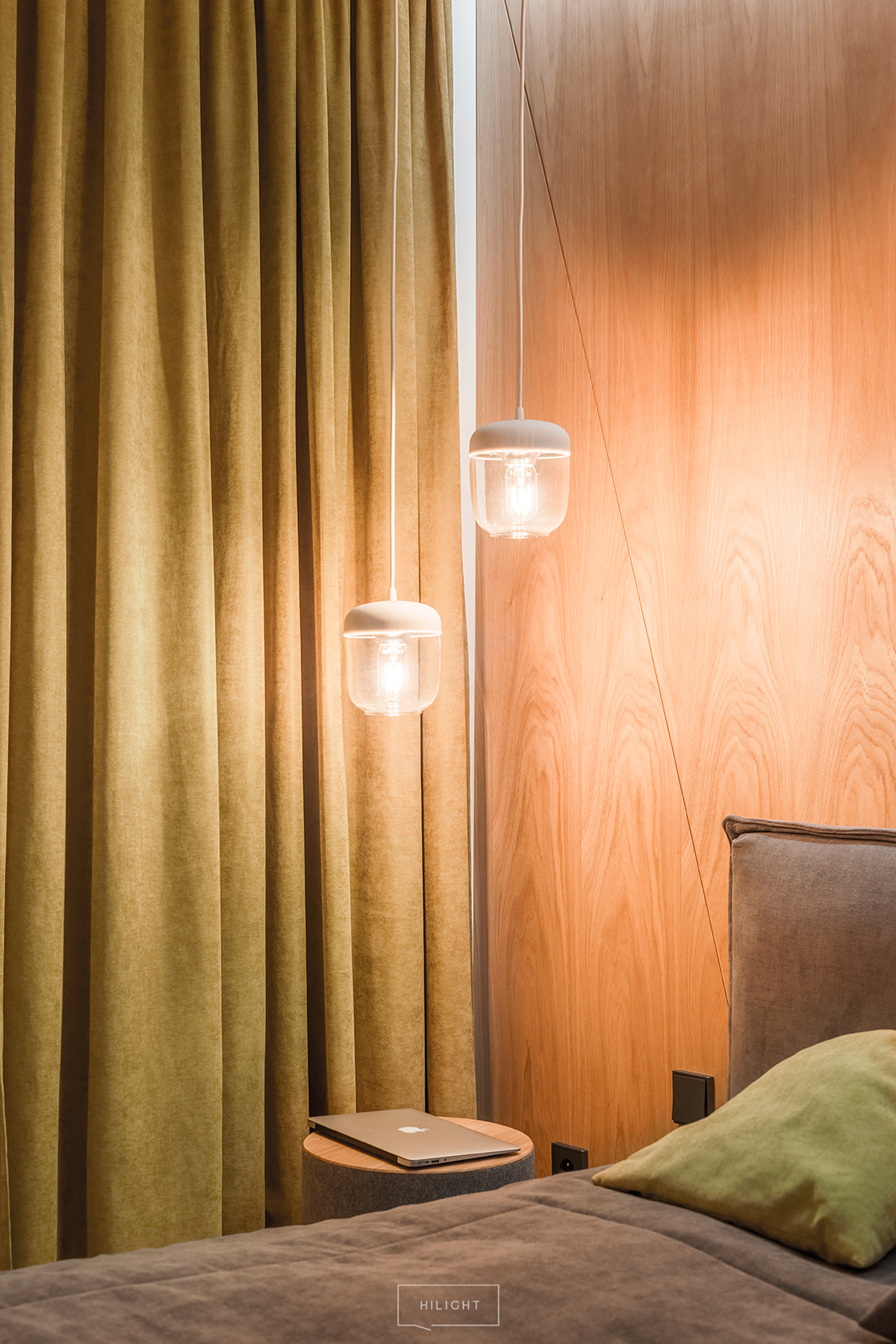 침실은 길게 내려오는 조명을 2구를 설치하여 포인트 느낌을 주었습니다.