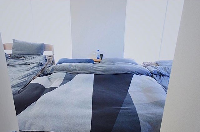상쾌하고 차가운 듯한 이불 커버는 침실을 세련되게 보여줍니다.