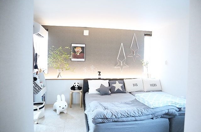 무채색으로 꾸민 아이방이에요.