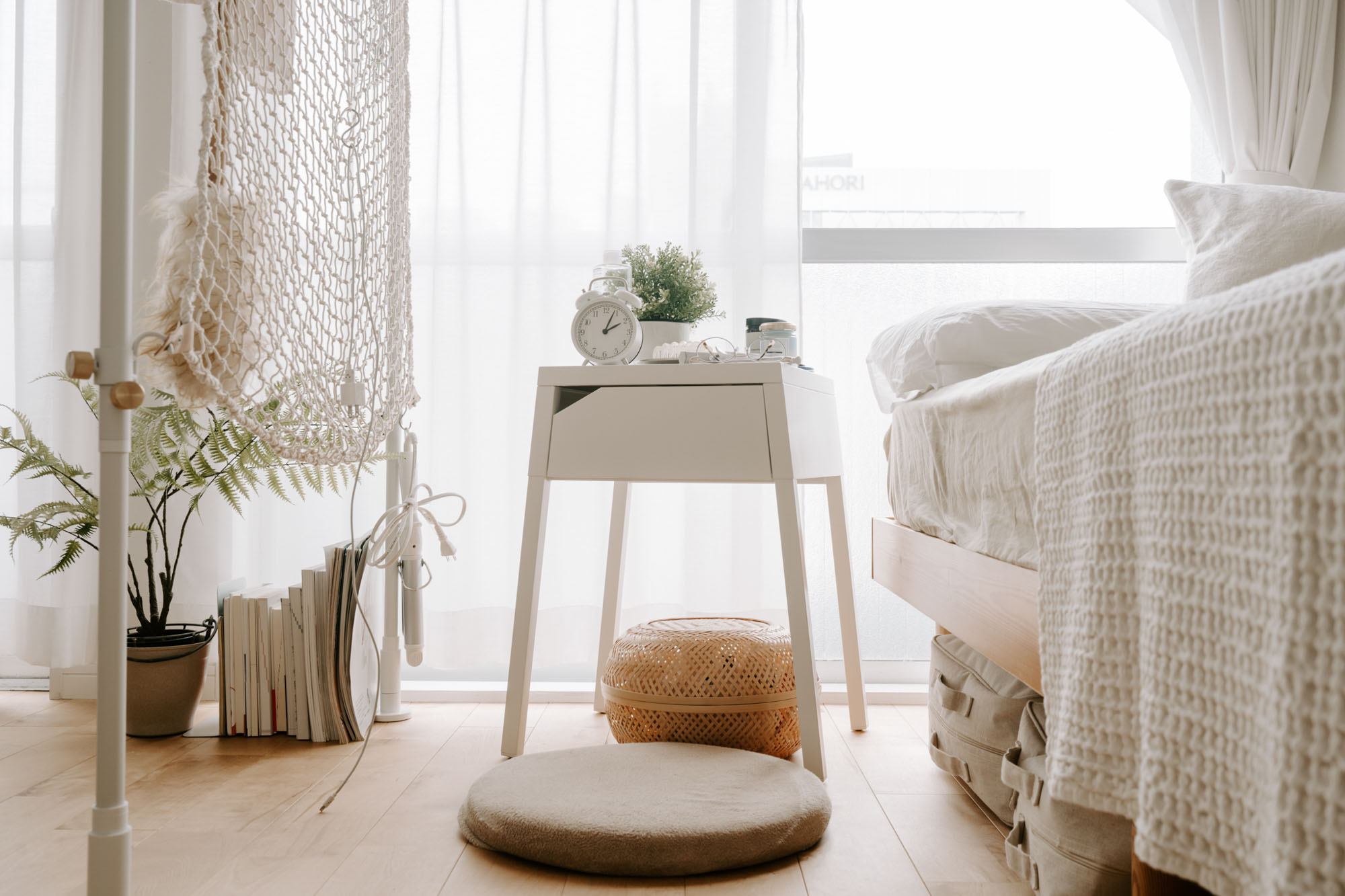 이케아에서 구매한 작은 협탁에 다양한 물건들을 놓고 아주 편리하게 사용하고 있답니다.