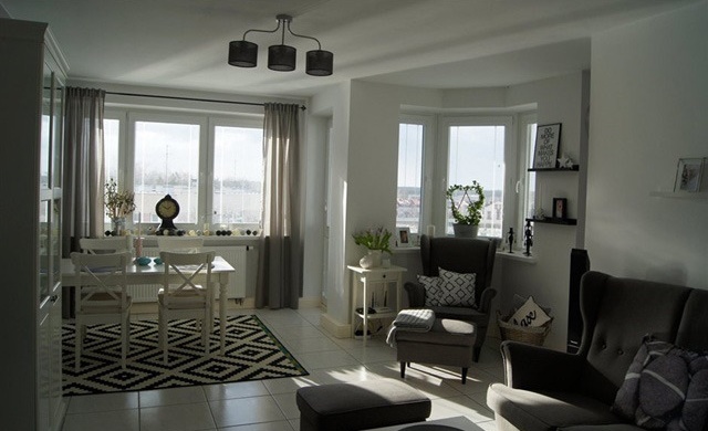 거의 모든 가구가 검정, 흰색 또는 회색으로 꾸며진 그레이 하우스입니다. 그래서 그런지 꽃이나 기타 장식품들이 더욱 눈에 띄고 더 잘 어울리는 거 같네요. 침실은 깨끗한 흰색 이불로 다소 칙칙할 수 있는 분위기를 화사하게 연출한 게 돋보입니다. 또한 액자 선반으로 밋밋할 수 있는 방이 더 멋들어져 보입니다.