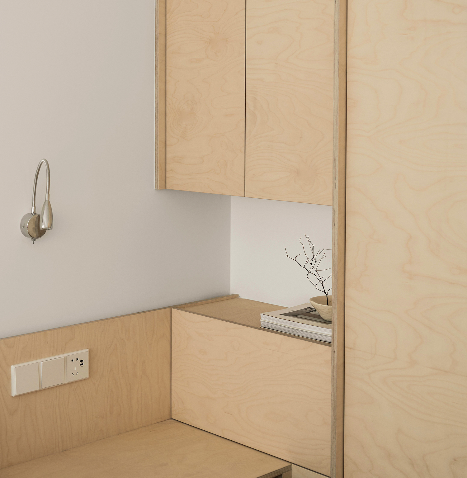 자작나무 소재의 벽을 세워 모두 수납장으로 설계한 모습입니다.